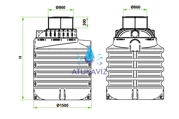 A szennyvízátemelő akna 1500mm átmérőjű, magassága (H) 2000mm.